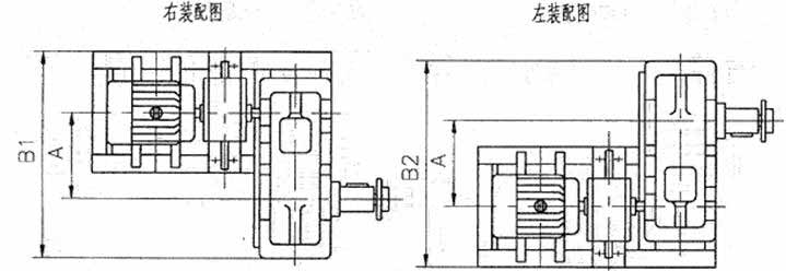 右裝—站在電動機尾部向前看,減速器低速軸在電動機的右側(cè)。