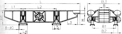 慣性振動輸送機料槽使用橡膠彈簧或鋼簧支承,依靠固定在料槽上的兩臺振動電機的自同步運轉,使料槽產生直線振動。慣性振動輸送機可制成上振式、下振式和側振式三種形式。